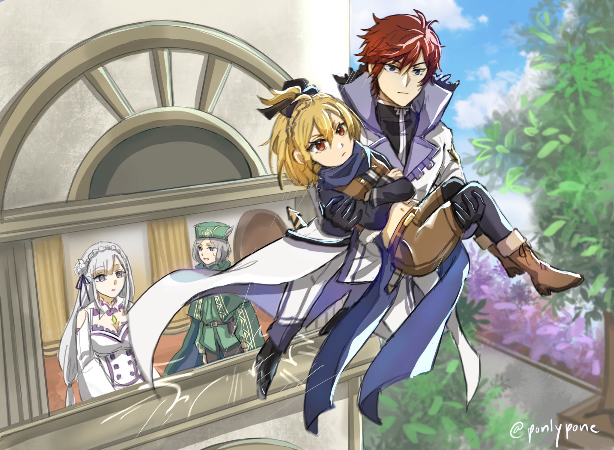 Hearing that choked, tearful voice repeatedly calling out for his beloved, Emilia stepped forward towards the middle of the room as well, gazing upon Crusch, who Ferris was fixed on.